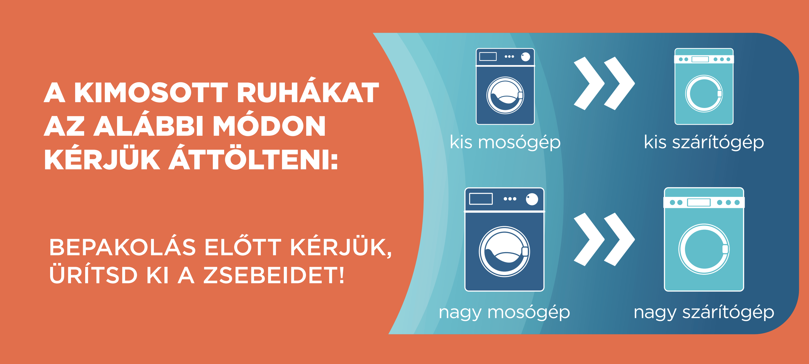 Mosógép – szárítógép áttöltési útmutató matrica